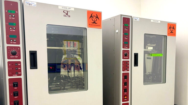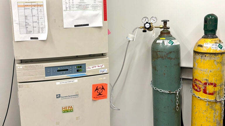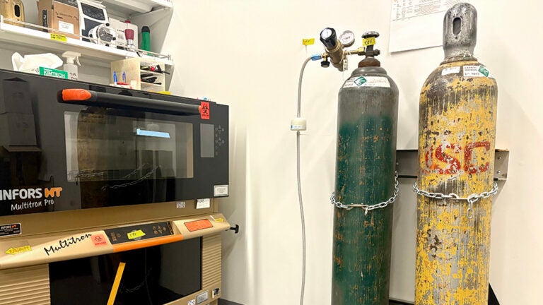 These two liquid nitrogen tanks are constantly maintained to preserve our stock cell banks in vapor phase for baculolvirus and mammalian expression. Also maintained are different types of mammalian beta cells for our cellular imaging projects.