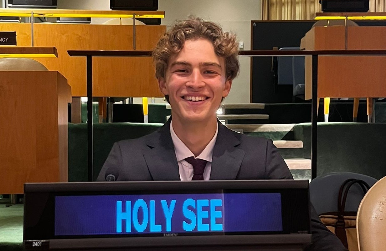 Francesco Micaletti-Hinojal credits his coursework and a variety of internships as contributing to a strong interest in the ethical and legal complexities involved in studying genocide and humanitarian interventions. In the summer of 2024, his internship at the Holy See Mission to the United Nations further expanded his knowledge of international diplomacy and peacekeeping. There, he worked on multilateral conflict resolution strategies, gaining firsthand experience navigating the ethical and legal challenges of humanitarian action.