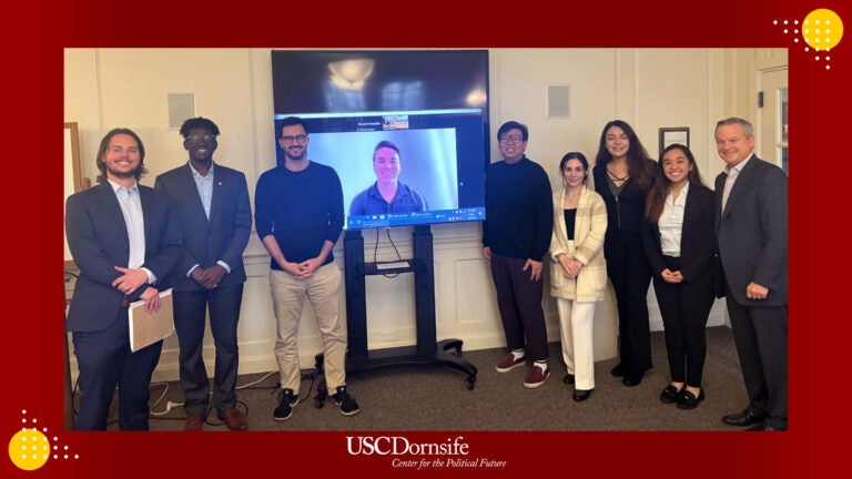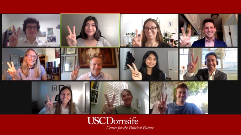 As part of the Unruh Institute POSC 395 Policy Research Internship, students work collaboratively with prominent political partners to develop policy solutions to real-world challenges facing the nation. Students take part in team-based research projects, like the ones below, to tackle challenges including mass transportation, climate change, homelessness, broadband access, educational disparities, wildfires, and polarization.