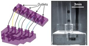 Chemical & Engineering News highlighted work by USC chemists Richard Brutchey and Noah Malmstadt in which they designed a microfluidic reactor that produces uniform droplets across a parallel device network. They used the device to make platinum nanoparticles in ionic liquid solvent droplets, whose size were invariant to changes in pressure, flow rate, and channel surface chemistry across the parallel network. Read More