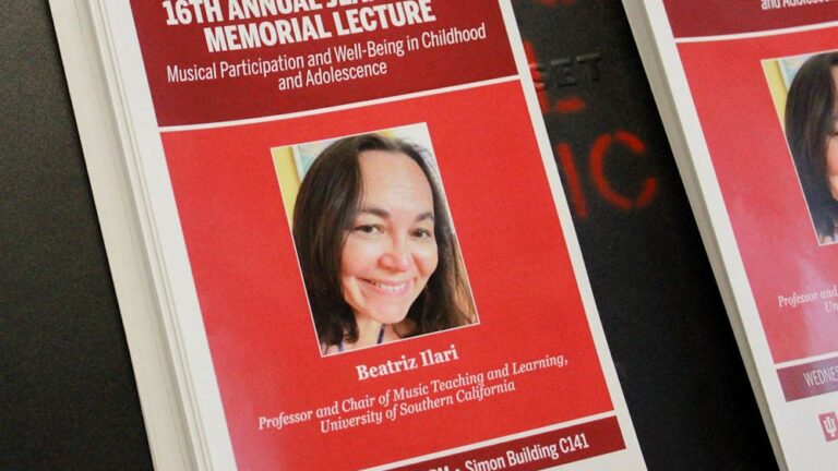 La Escuela de Música Jacobs organizó la 16ª Conferencia Anual en Memoria de Jean Sinor, en la que Beatriz Ilari de USC habló sobre su investigación sobre “Participación musical y bienestar en la niñez y la adolescencia”. El estudio de Ilari encontró que participar en actividades musicales puede beneficiar significativamente el éxito académico y emocional de los niños en edad de escuela secundaria. La investigación destacó la importancia de la confianza y la competencia para el bienestar, explorando cómo la música fomenta los vínculos sociales, el cuidado y la salud mental.