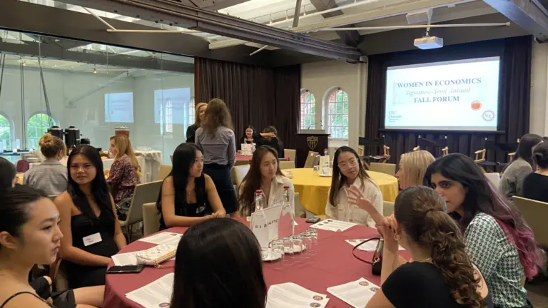On October 23rd, 2024, the Women in Economics forum brought together students and alumnae for an enriching evening of engagement and networking. Attendees had the chance to connect with successful economics alumnae across fields in finance, consulting, law and actuarial science, gaining valuable insights and fostering important conversations. Participants were encouraged to come with questions and actively join the discussion, making the event a dynamic opportunity for growth and collaboration.