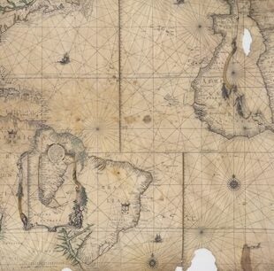 Image: Detail from “Vallard Atlas,” (1547) HM 29 f.1, chart 9, North America, east coast. Portolan atlas. Courtesy of the Huntington Library.