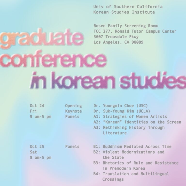 The USC Korean Studies Institute hosted an Annual USC Graduate Conference in Korean Studies on October 24-25, 2025. Over two days, junior scholars presented papers on topics related to women artists, portrayal of Korean identities in the media, history literature, Buddhism, modernization, rhetoric in premodern Korea, and translation and multilingual texts. The panelists comprised of graduate students at USC and beyond. Through their participation, a number of programs from across the country and even across the Pacific were represented, including Duke University, Ewha Womens University, George Washington University, Ohio State University, Seoul National University, UC Davis, UC Irvine, UCLA, and Yale University.