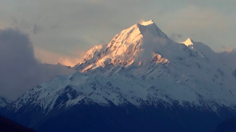 This photo was taken besides Lake Pukaki when we finished hiking to the glaciers and were driving back. The road is long, narrow, and curved, but the snow mountains were always huge, steady, and always sitting behind me. Snow Mountain to me is a substance that I would never be at the same height with. They are so pure and so powerful, and I would always love them and stare at them holding my breath. The sunshine changed a lot during sunset time when I took the picture, and the mountain shifted from white to orange to pink, beautiful and stunning in different ways.
