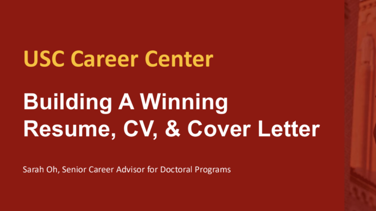 Building a Winning Resume, CV, and Cover Letter by the USC Career Center
